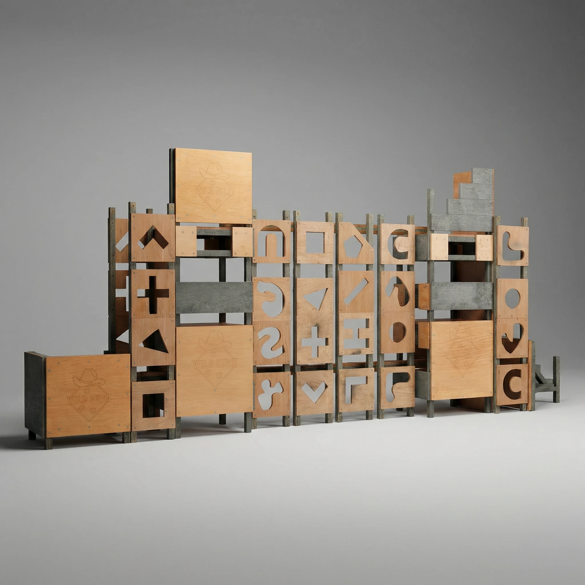 Modular panel with various shapes for shooting training.
